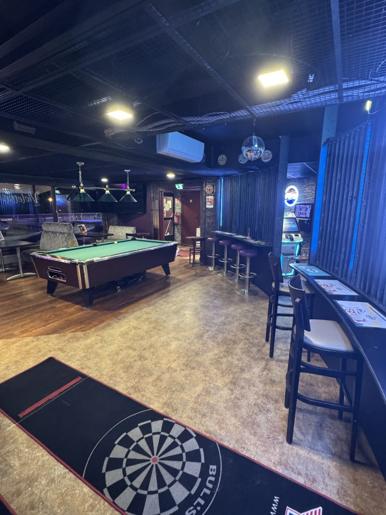 Ravintolan uudelta Pub puolelta löytyy yksi pelikan biljardipöytä sekä jukeboxi josta voit valita mieluista musiikkia, lisäksi meillä on kaksi darts taulua vapaasti pelattavissa