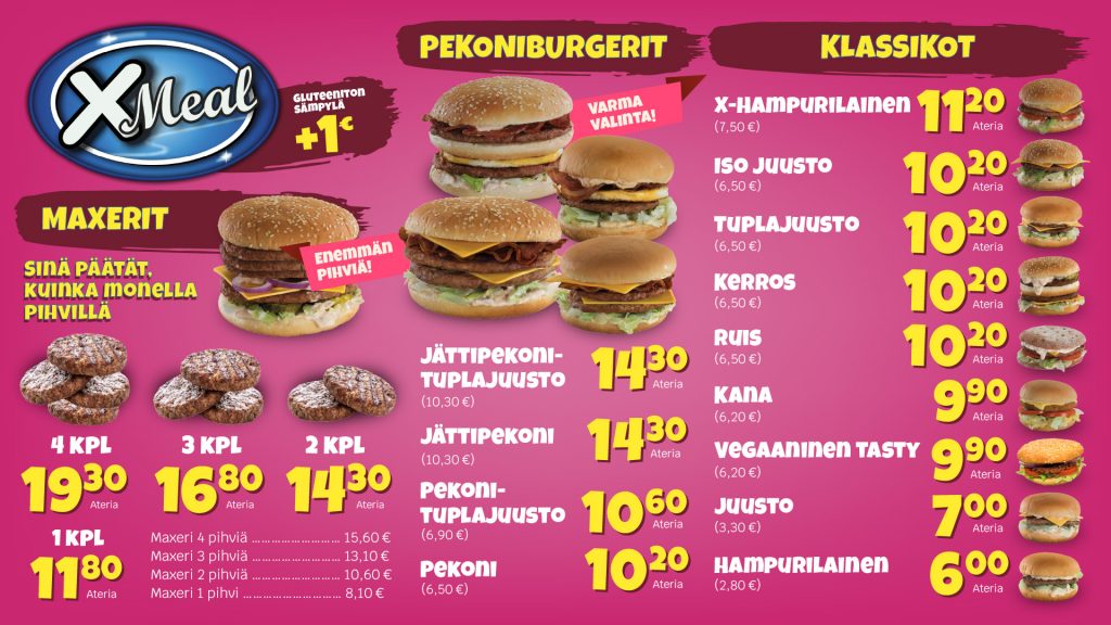 Xmeal on suomalainen, konstailematta reiluin yrittäjävetoinen hampurilaisravintolaketju. Ketjulla on yli 25 vuoden kokemus hampurilaisravintola-alalla. Xmealin hampurilaiset ja muut herkut valmistetaan aina tuoreista raaka-aineista.
